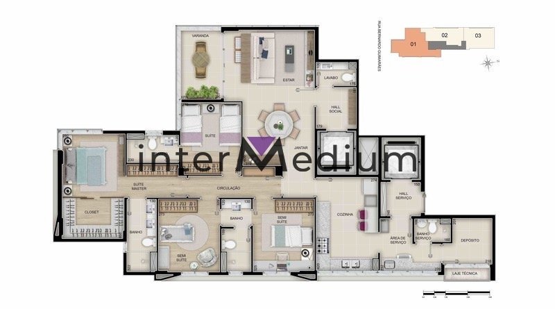 Apartamento com 165m², 4 quartos e 3 vagas;