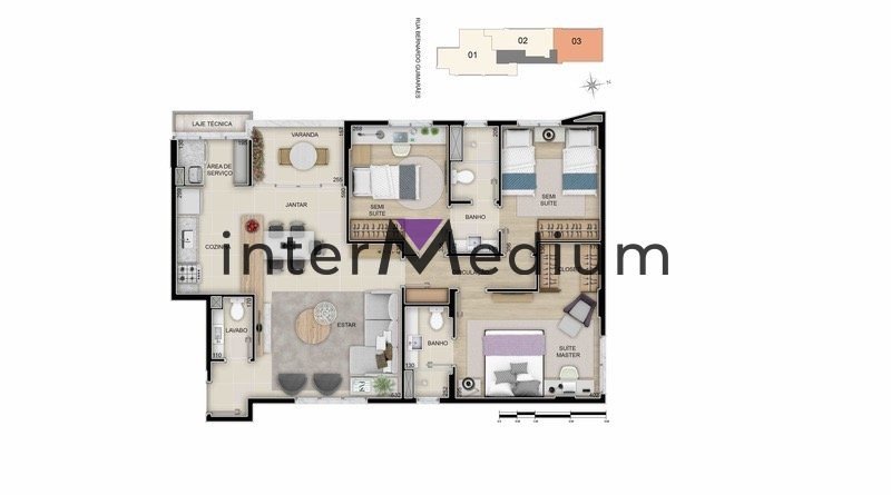- 3 elevadores com controle de acesso: 1 exclusivo para as unidades de 4 quartos;